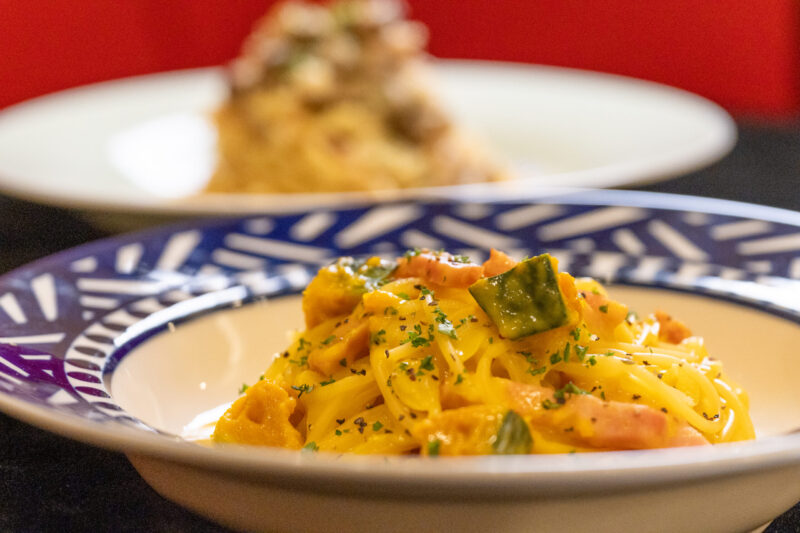 旬のかぼちゃの優しい甘みとベーコンが相性抜群の濃厚なクリームソースパスタです。